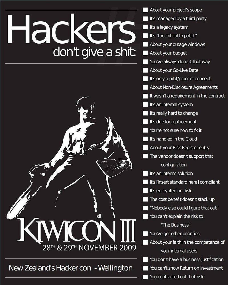 Більшість компаній, які були зламані, мали в тій чи іншій формі Політику безпеки. Чому вони постраждали? Тому що папір не захищає від хакерів. Від хакерів та шкідливого програмного забезпечення (ака вірусів) захищають правила та дії. Правила окремо та дії окремо — не захищають, лише разом: правила + дії. Причому ані правила, ані дії не треба вигадувати — все вже давно в доступній формі є “у пабліку”.